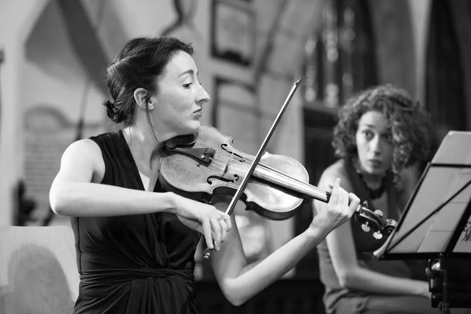 Emily spiller på en Ferdinand Gagliano violin, som venligst er stillet hende til rådighed af Beare’s International Violin Society.